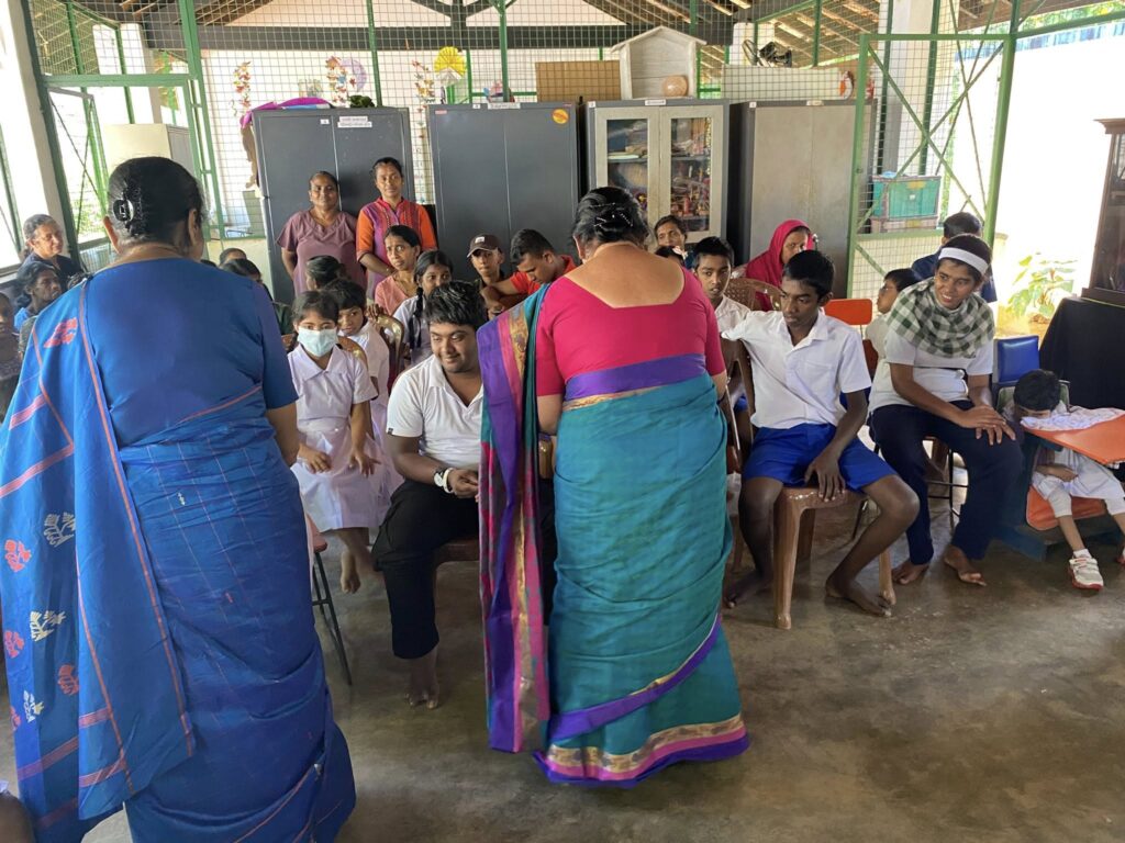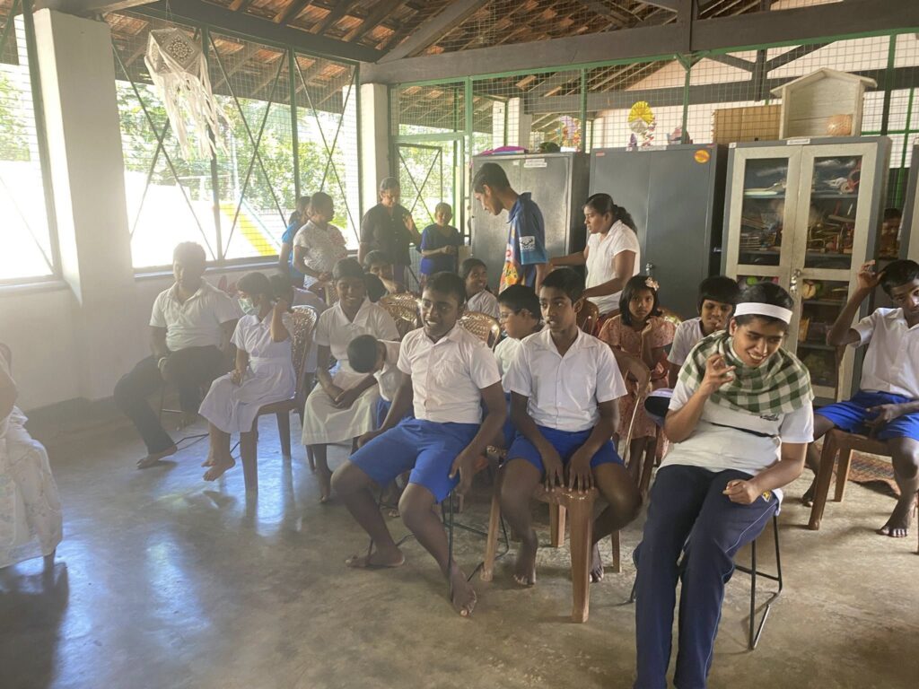 Adding a creative and therapeutic element, Ms. Jinendhi donated coir materials and conducted a hands-on demonstration on making handmade rugs. This activity encouraged skill development and provided therapeutic value for the children.